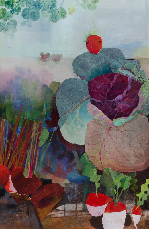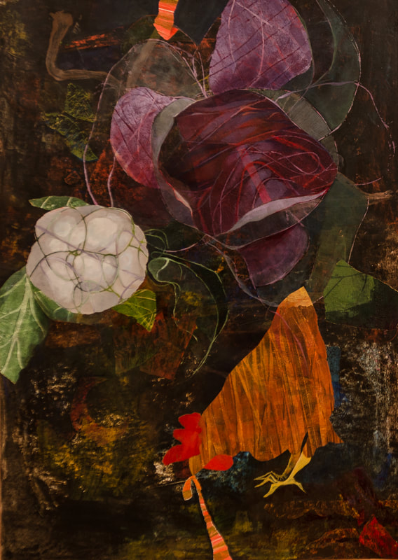 Ana's garden, collage and acrylics on paper, inspired by Ana and her infinite care
